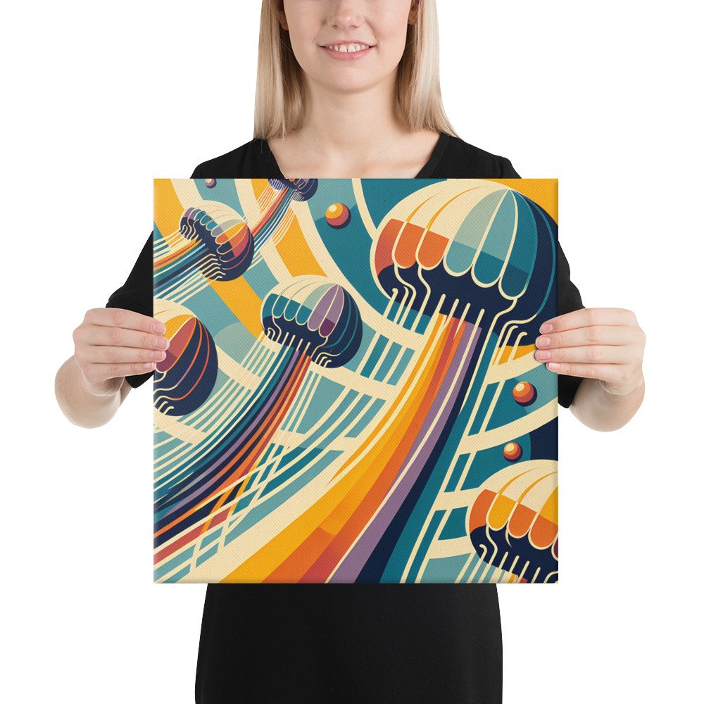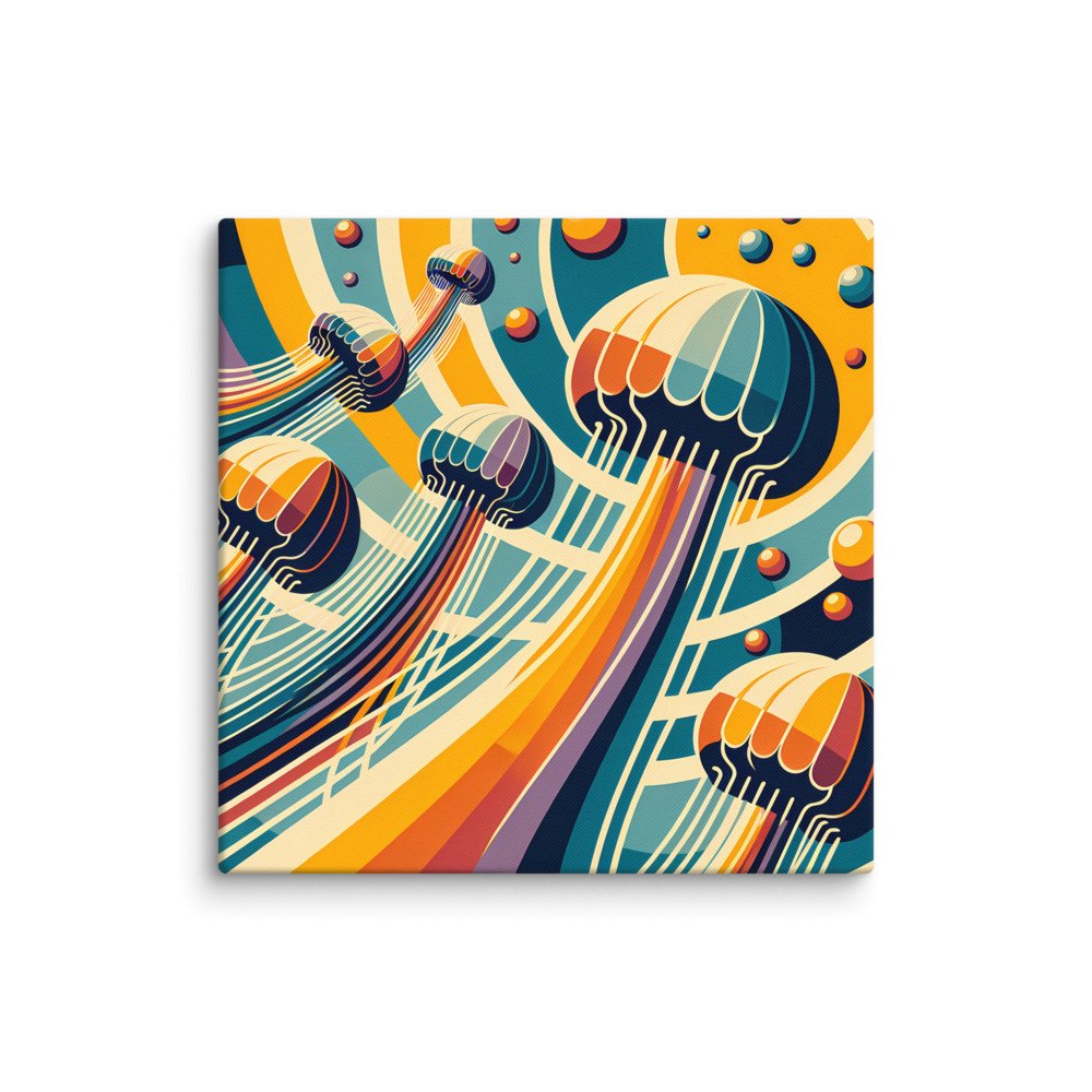 Retro Jellyfish Gradient Waves — Canvas Print