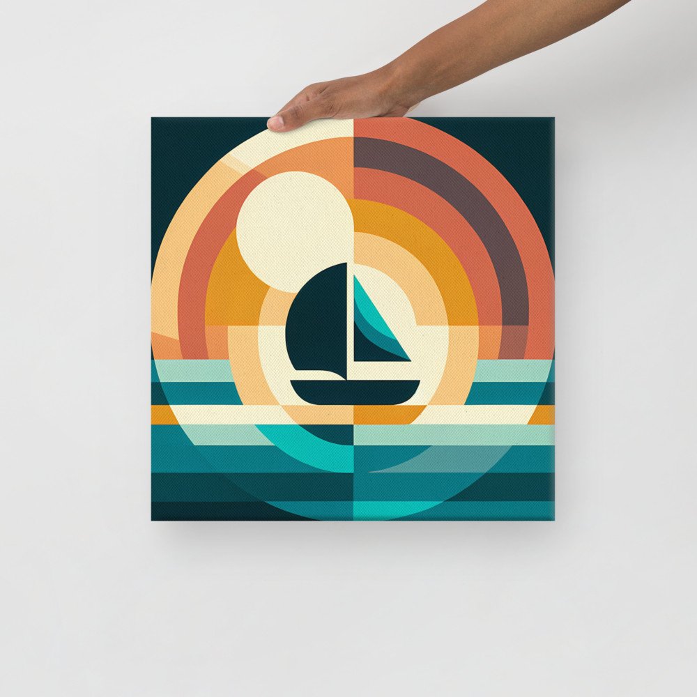 Retro Geometric Sailboat Sunset Art — Canvas Print