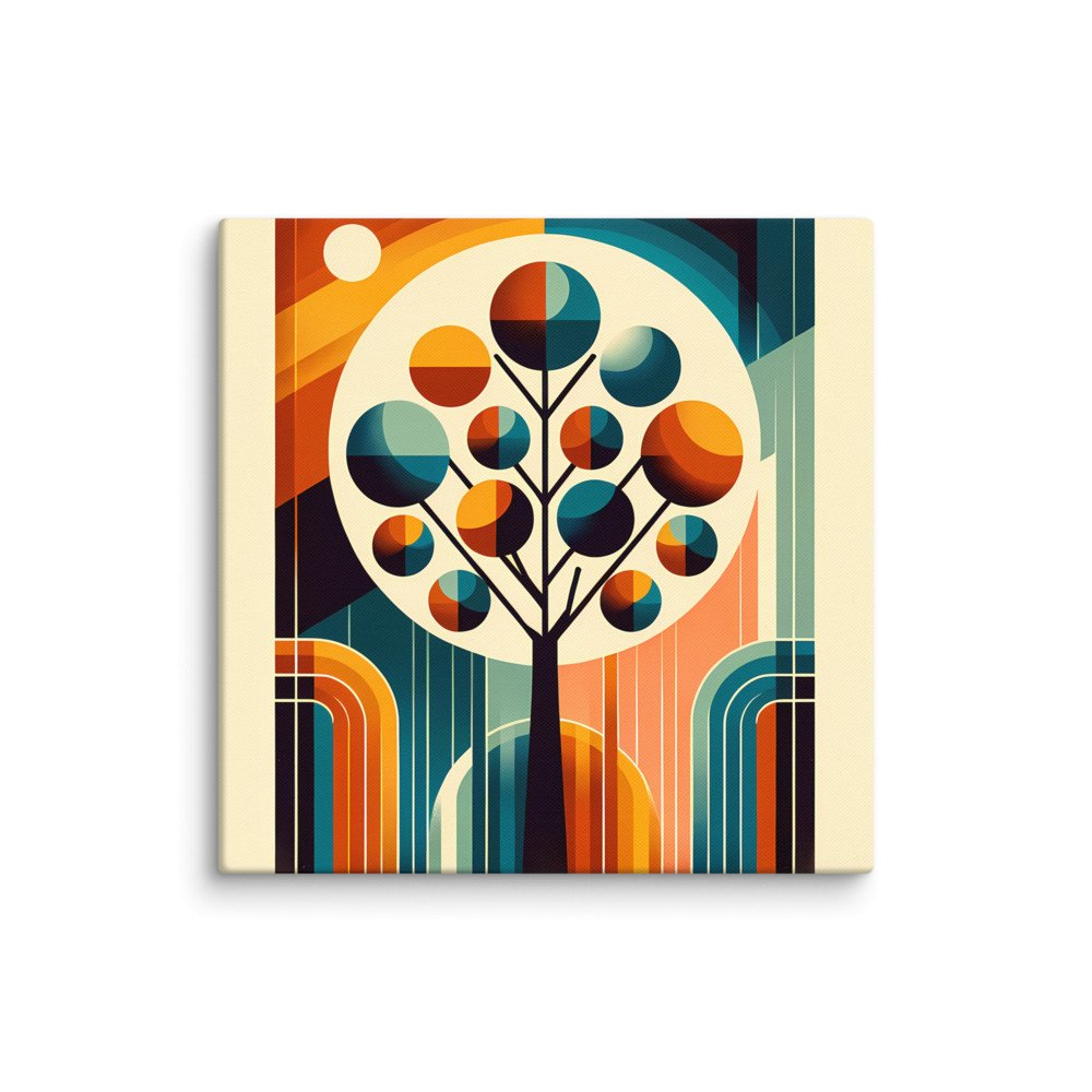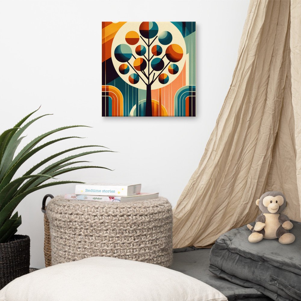 Mid Century Modern Geometric Tree in Teal and Orange — Canvas Print