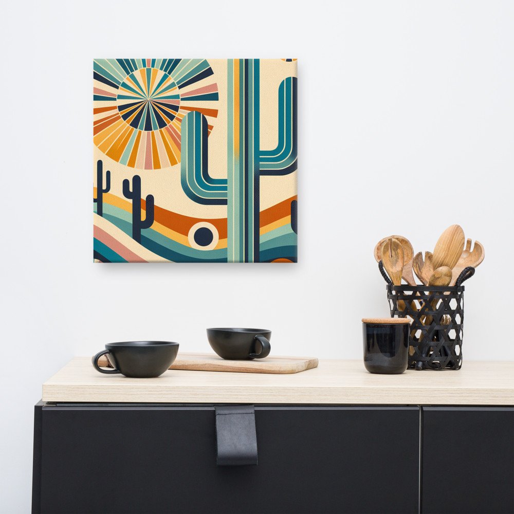 Retro Geometric Cactus Desert Scene — Canvas Print