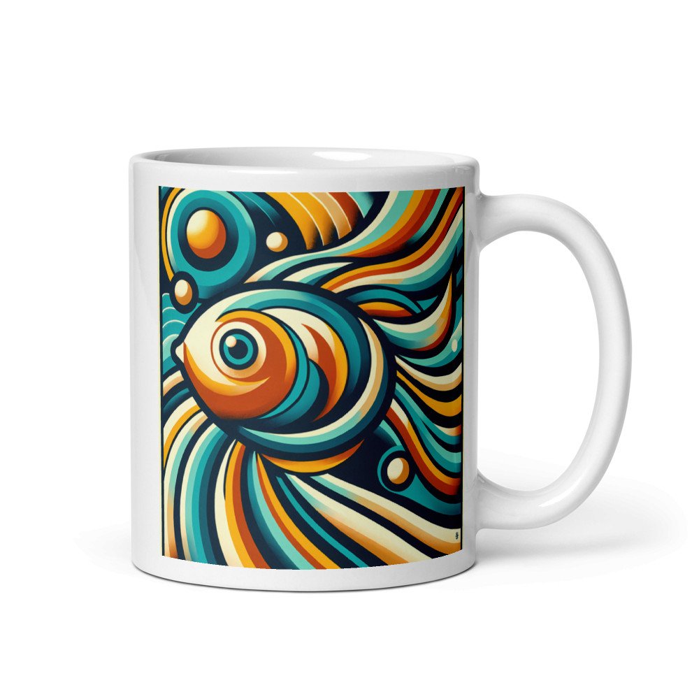 Retro Abstract Fish Swirl in Teal and Orange — Mug