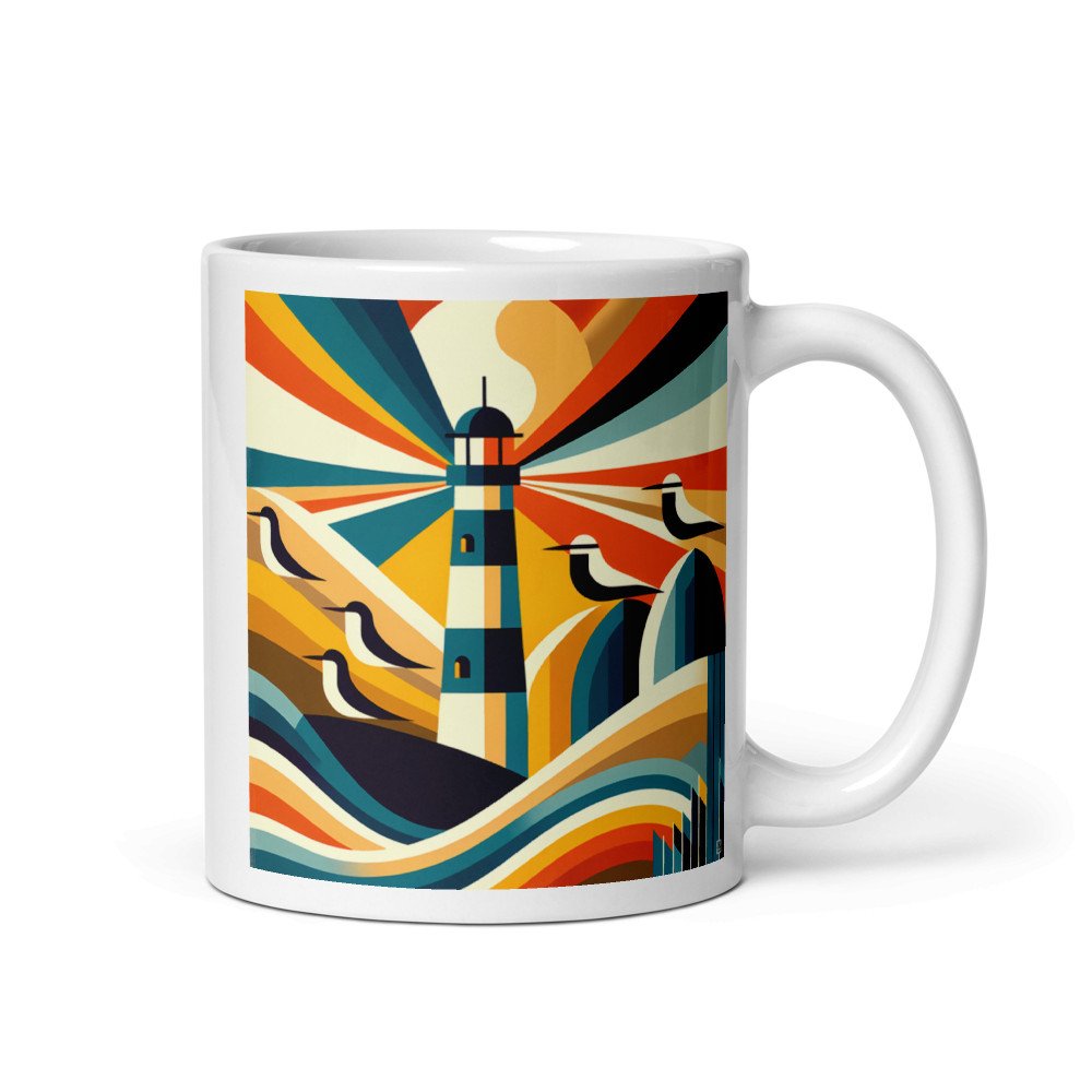 Retro Lighthouse Rays and Seagulls — Mug