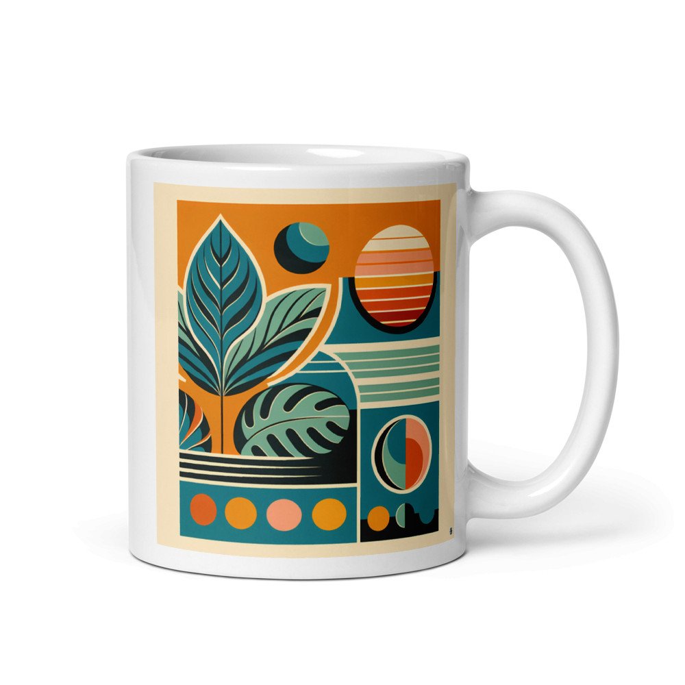 Geometric Botanical Leaves in Teal and Orange — Mug