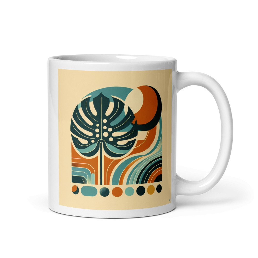 Abstract Monstera Leaf with Retro Geometric Shapes — Mug