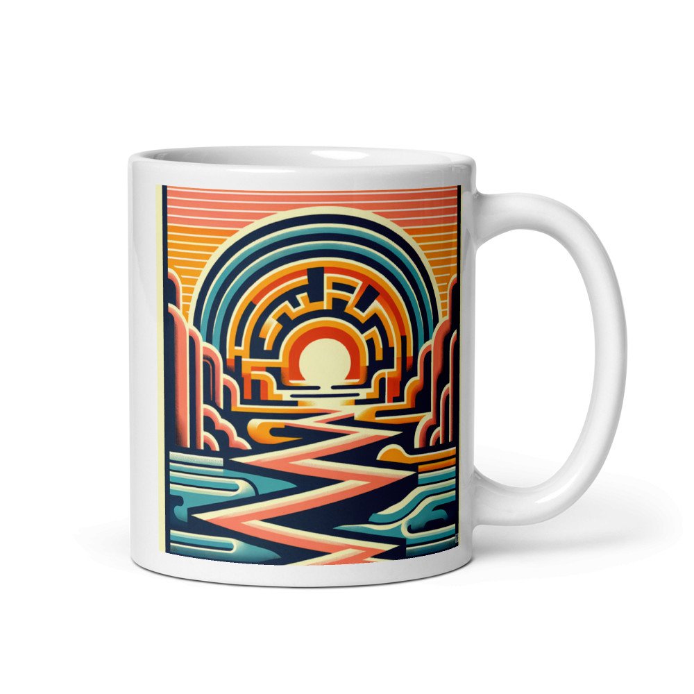 Geometric Sunset Over Zigzag River Canyon — Mug