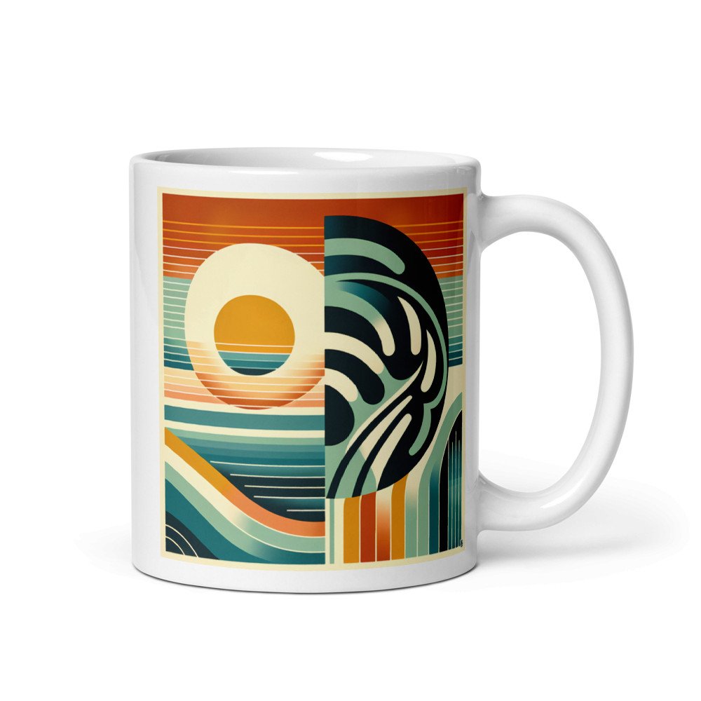 Geometric Sun and Monstera Abstract — Mug