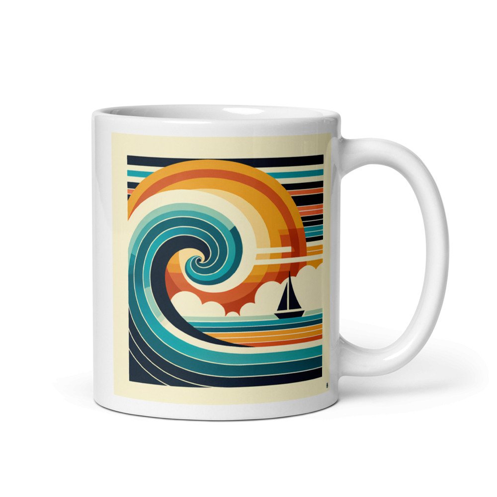 Geometric Wave and Sailboat Sunset — Mug