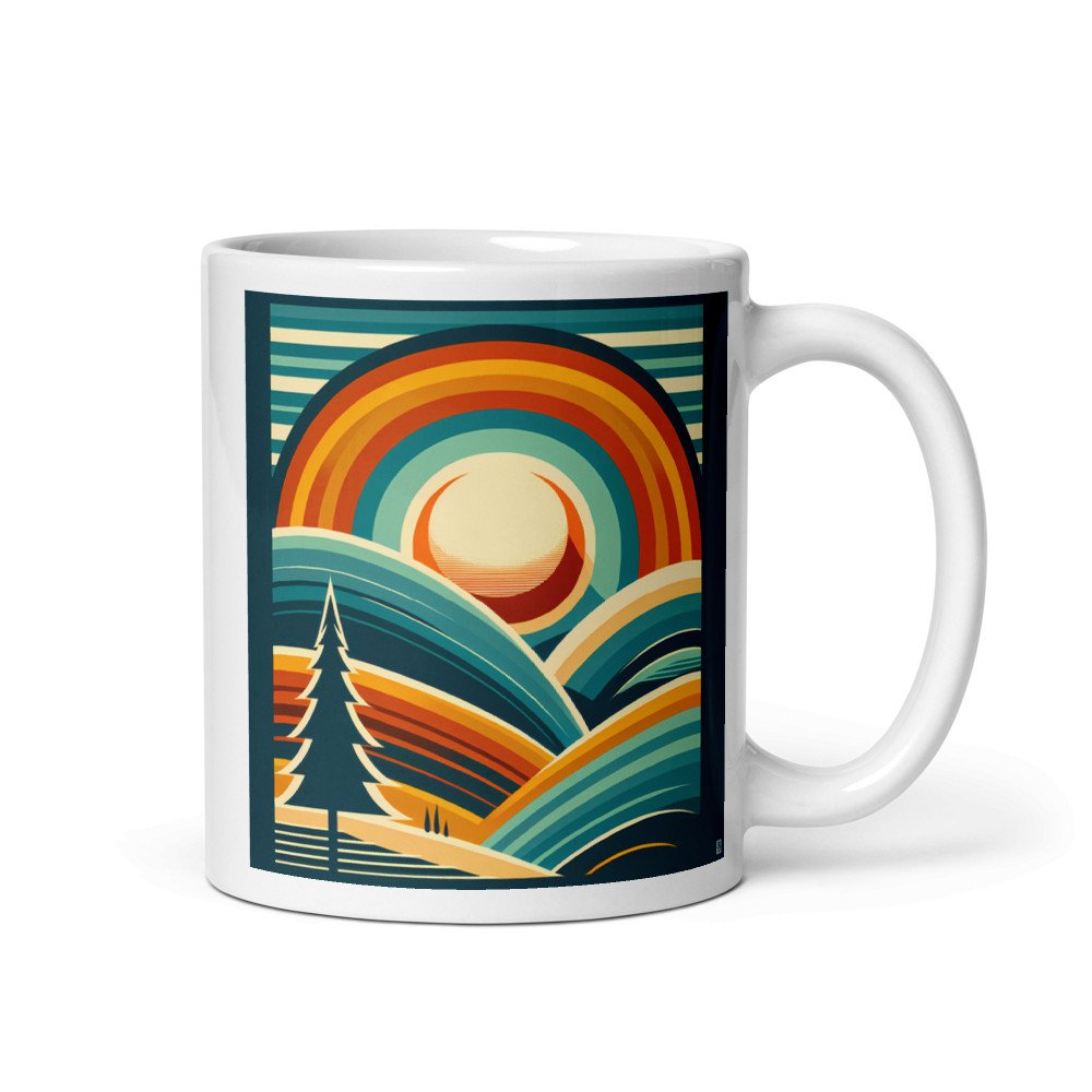 Geometric Sunset Over Rolling Hills — Mug