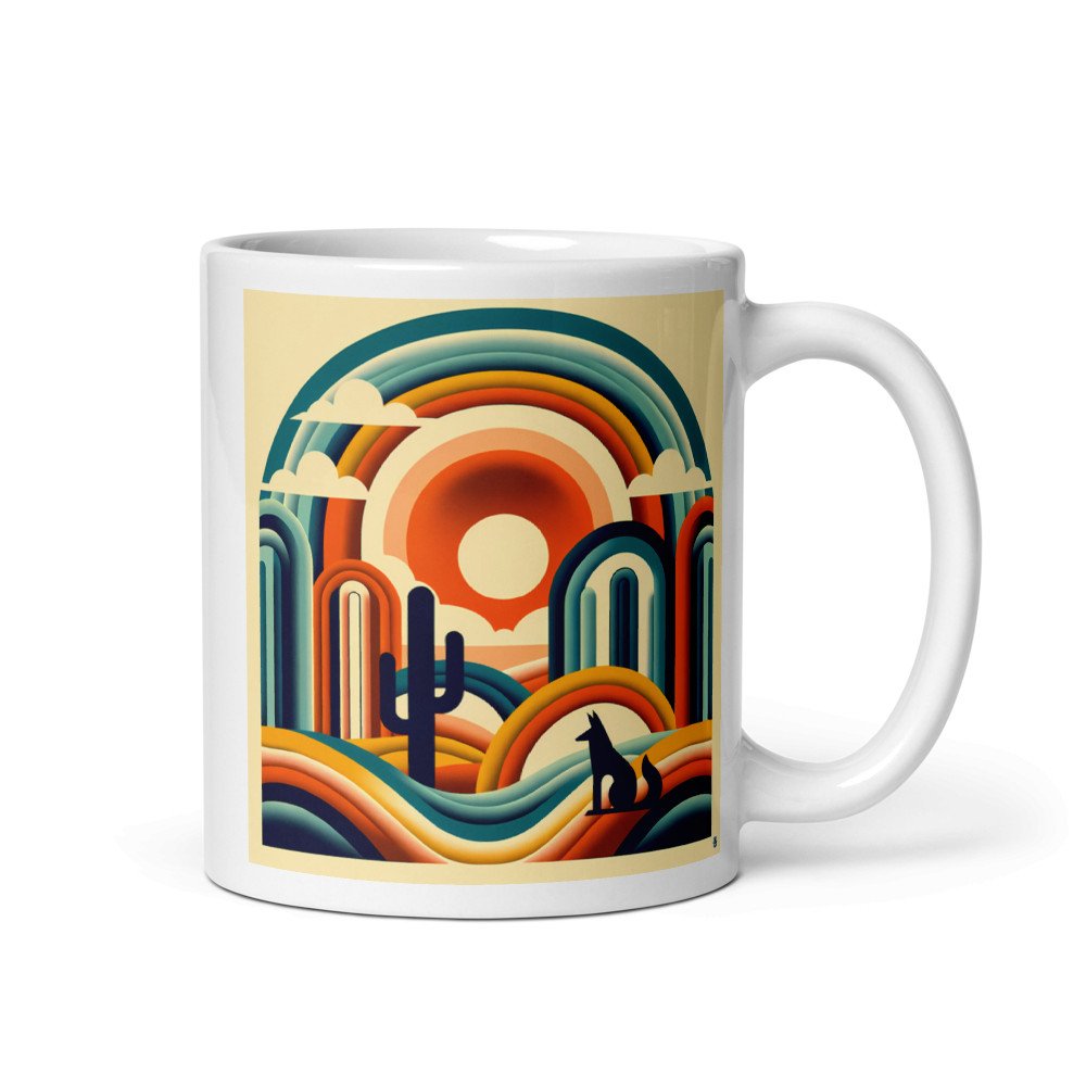 Geometric Desert Sunset with Fox and Cactus — Mug