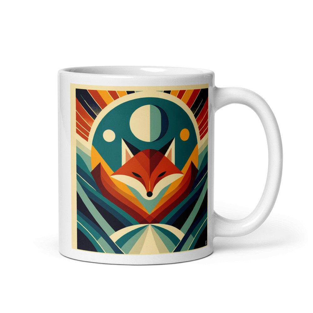 Geometric Fox Under Moon — Mug