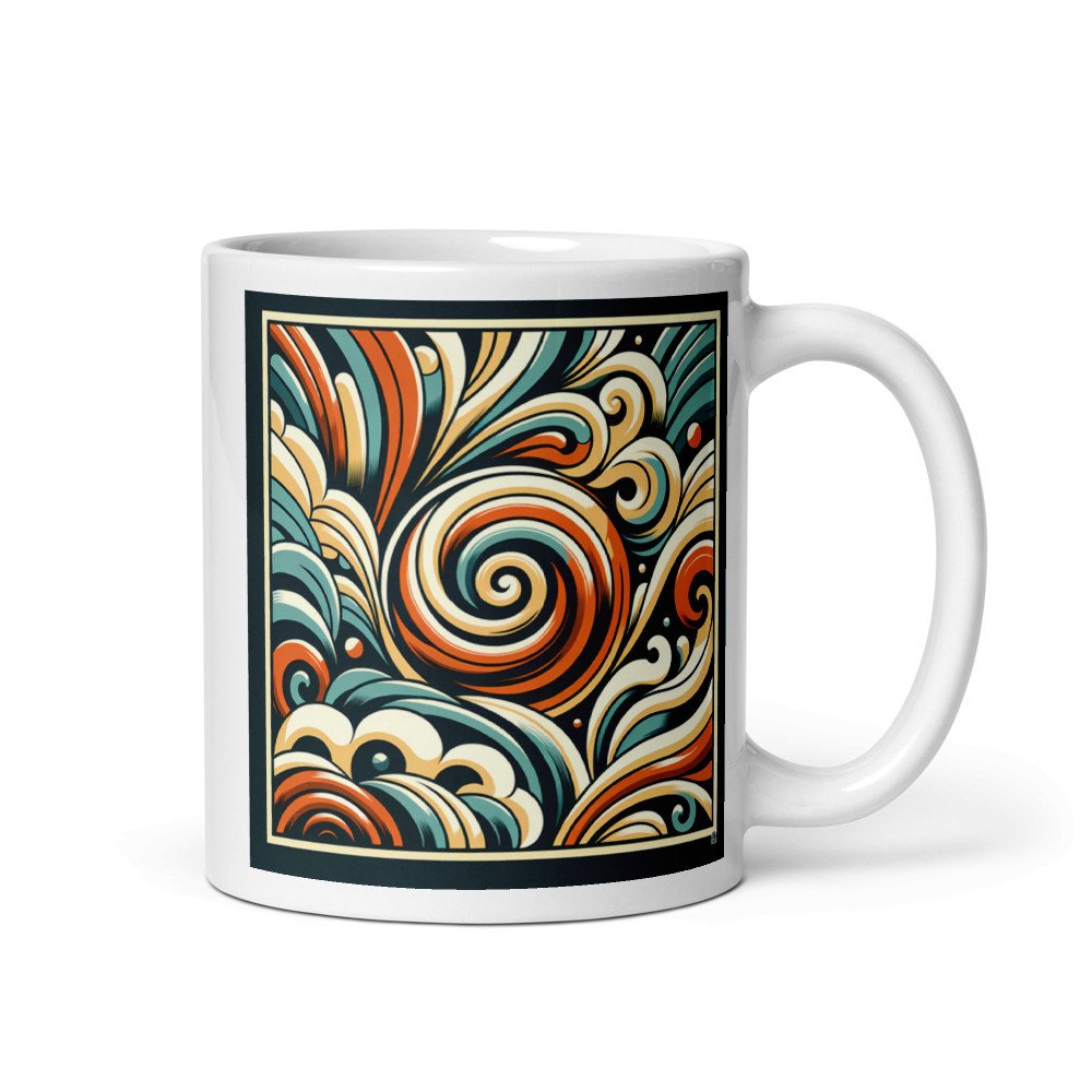 Retro Abstract Swirl Waves in Teal and Burnt Orange — Mug