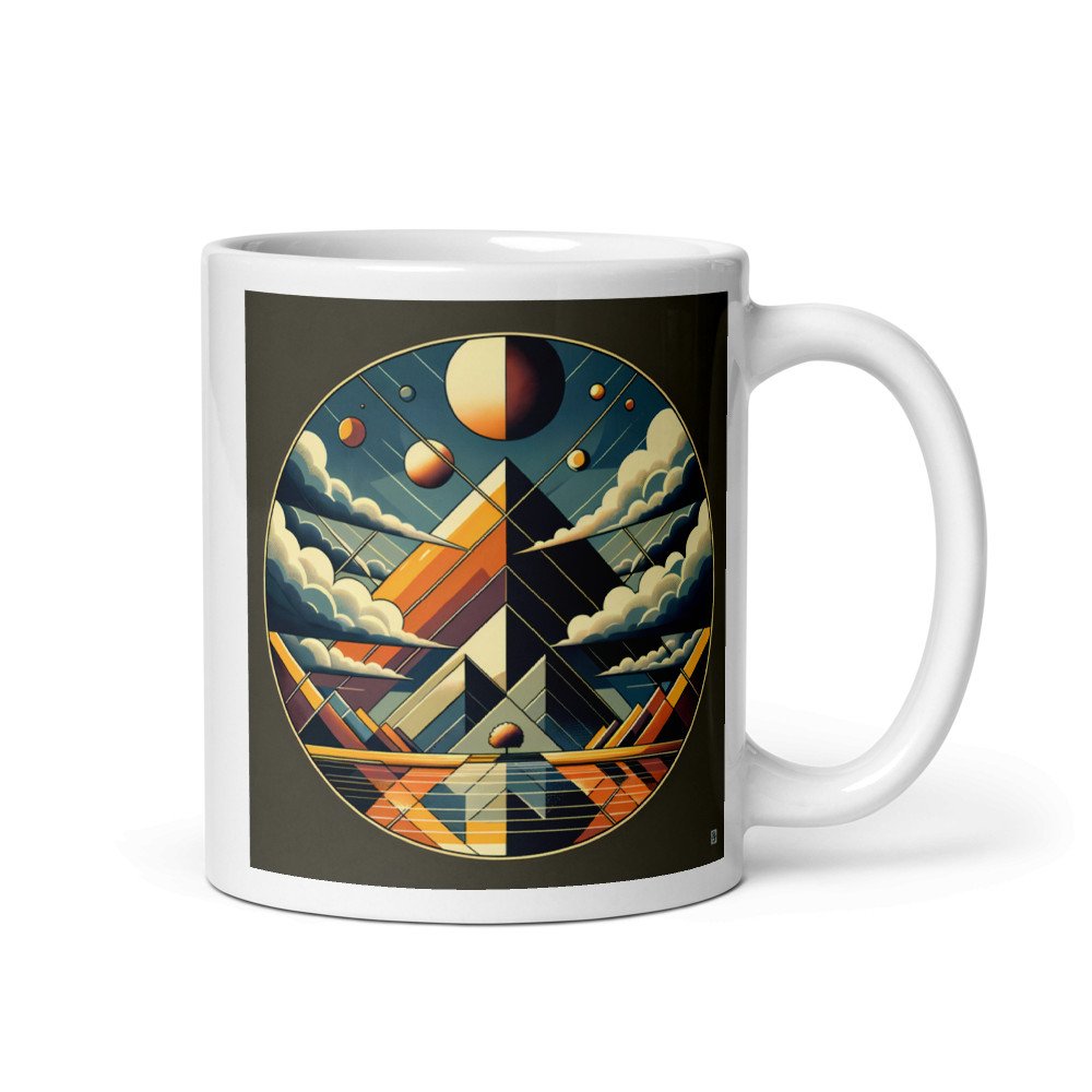 Retro Geometric Mountain Sky with Moons and Clouds — Mug