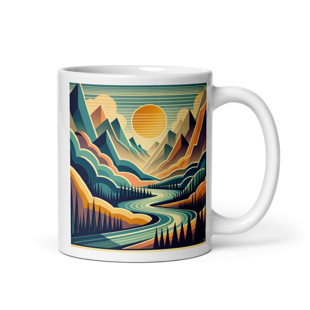 Geometric Mountain Valley at Sunset — Mug