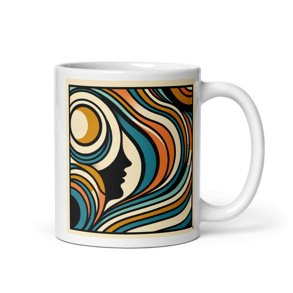 Abstract Line Face with Retro Waves — Mug