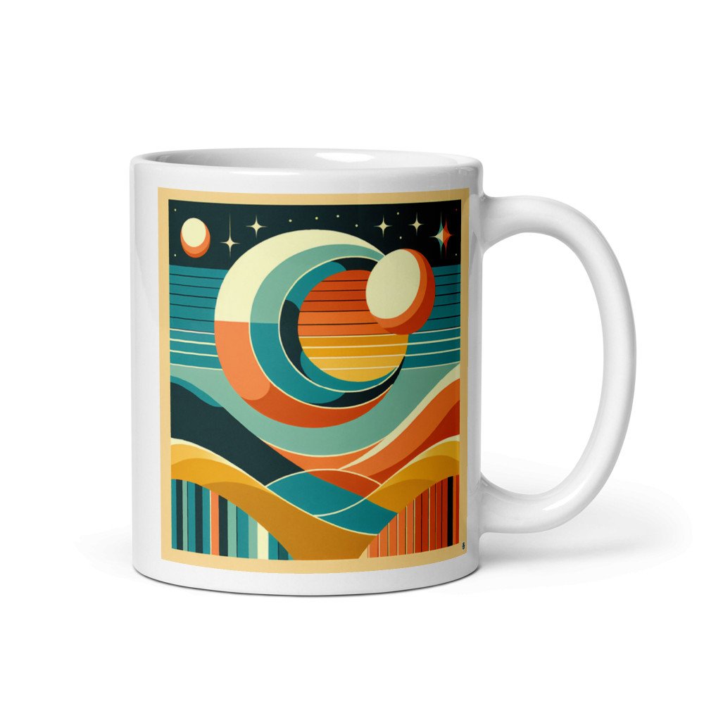 Geometric Sun and Moon Over Abstract Desert — Mug