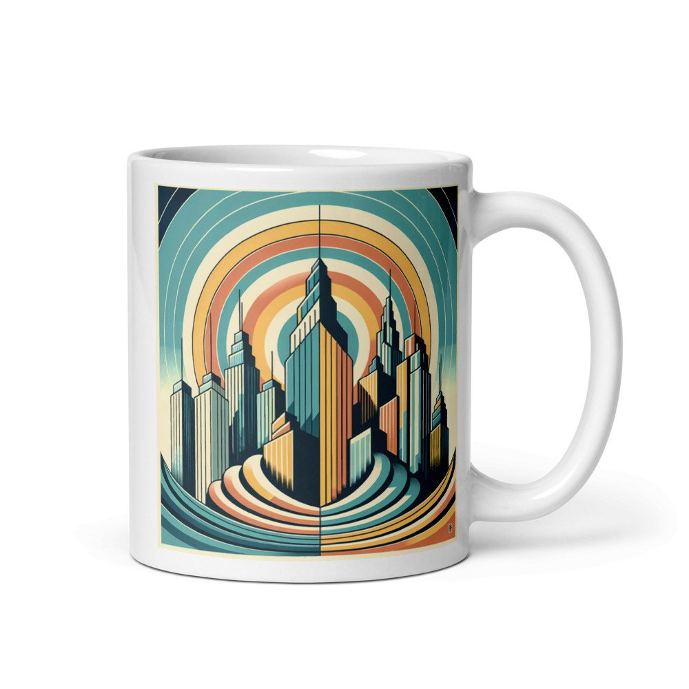 Retro Art Deco City Skyline with Sunburst Rings — Mug