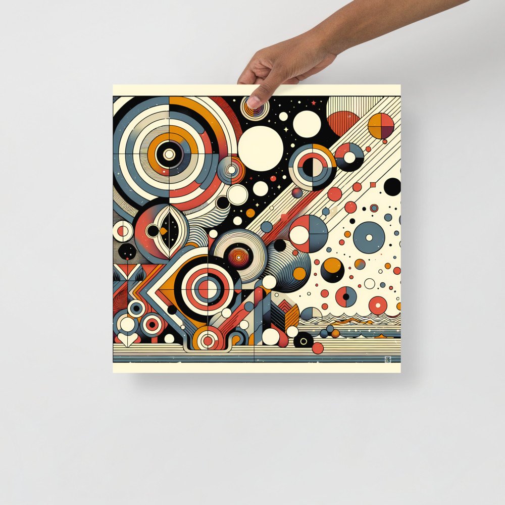 Retro Geometric Space Circles in Teal and Orange — Poster
