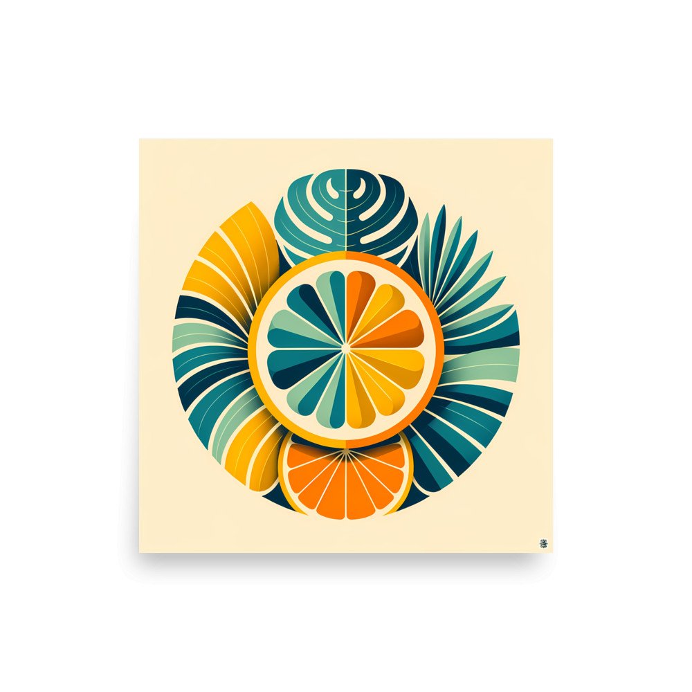 Geometric Citrus Slice with Tropical Leaves — Poster