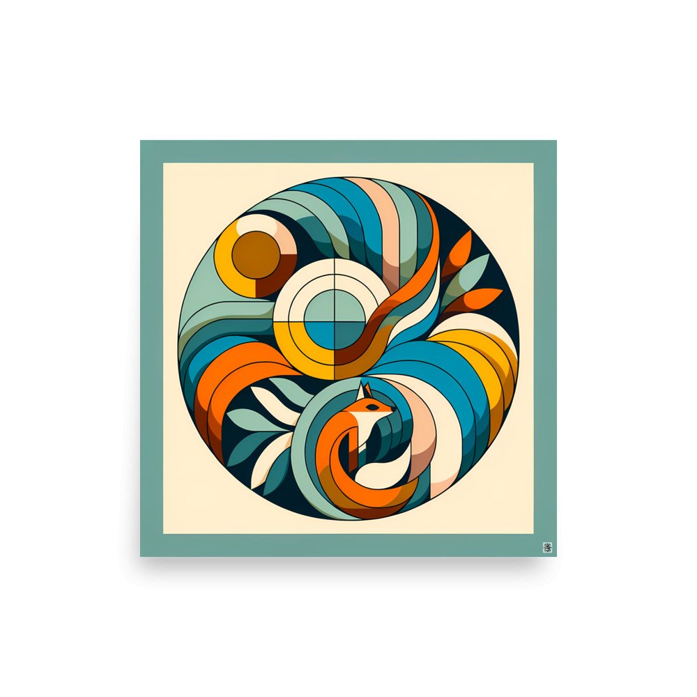 Autumn EchoGeometric Fox in Abstract Botanical Circle — Poster