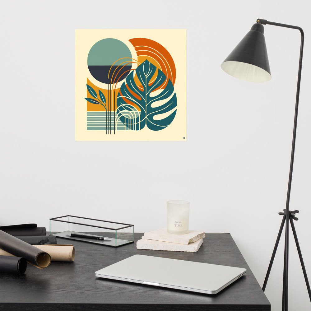 Abstract Monstera Leaves with Geometric Sun Shapes — Poster