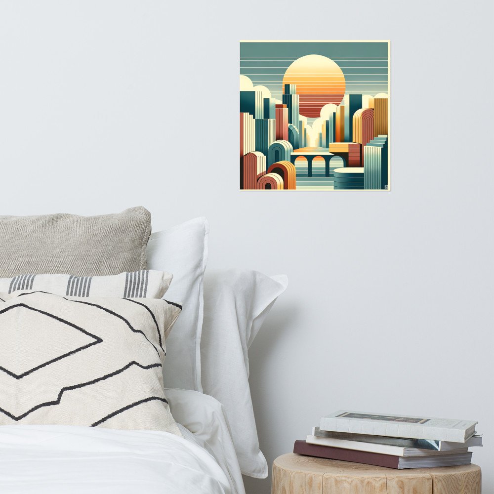 Geometric Sunset Cityscape Illustration — Poster