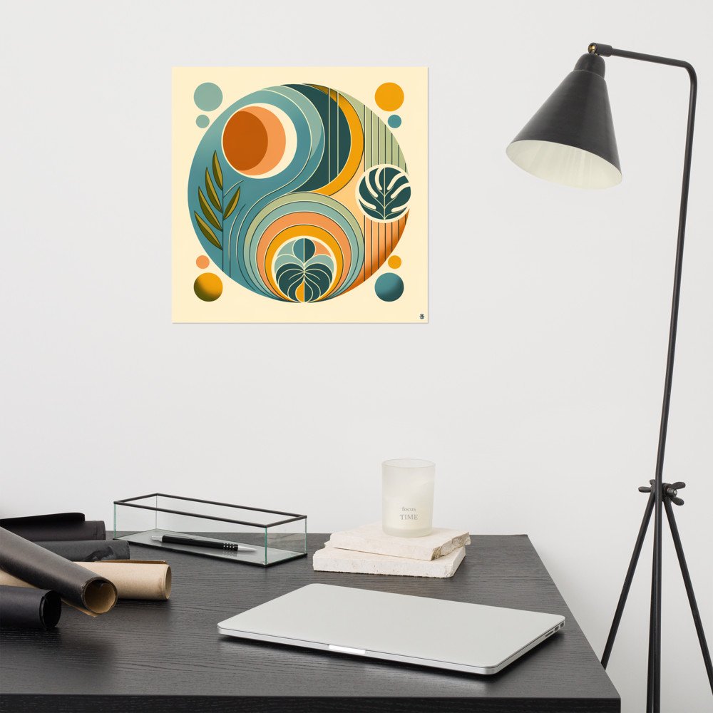 Abstract Botanical Circles in Teal and Ochre — Poster