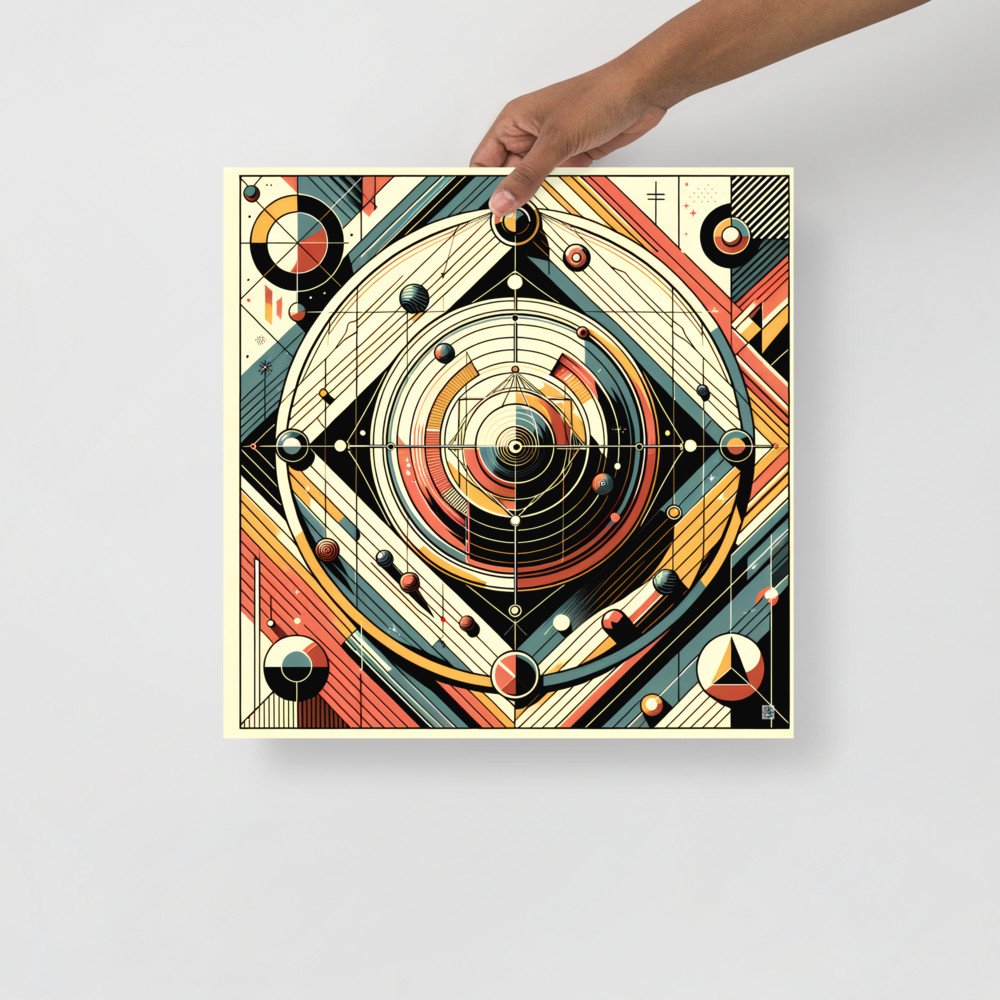 Printed on substantial matte paper, the retro space diagram's clarity and fine details are preserved. This archival piece allows the balanced composition of rings and sharp angles to command attention on any study or office wall.