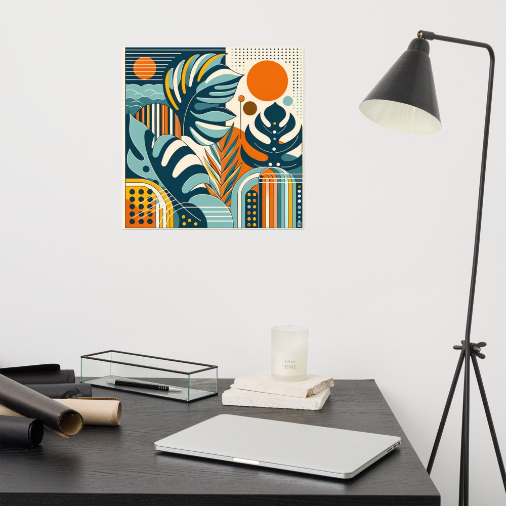 Abstract Botanical Leaves with Orange Sun — Poster