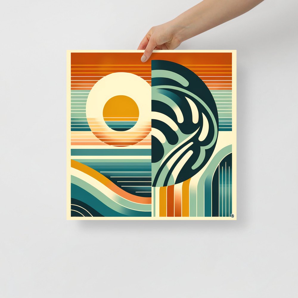 Geometric Sun and Monstera Abstract — Poster