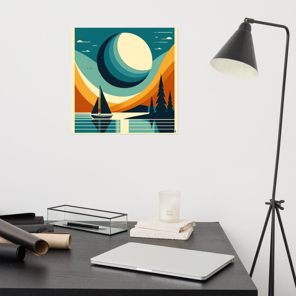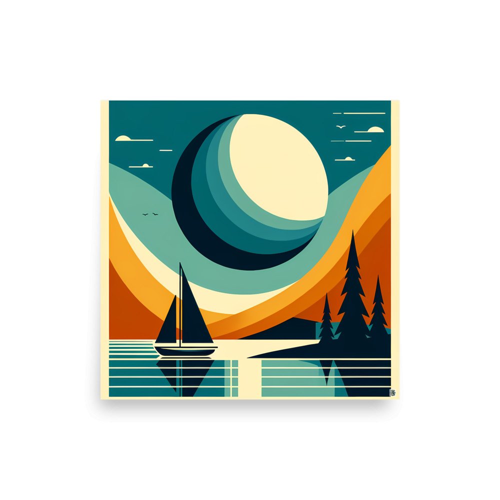 Geometric Moon Over Lake Sailboat — Poster