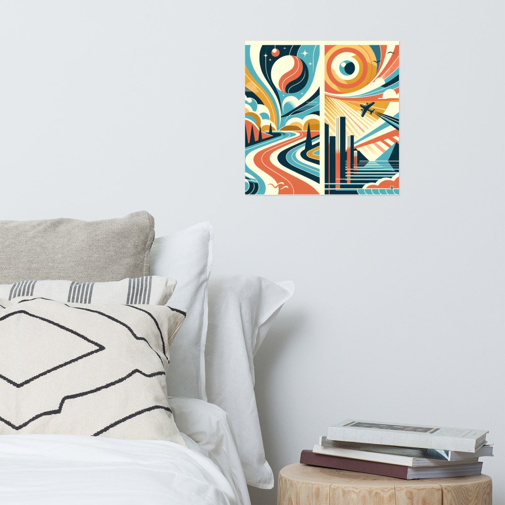 Retro Mid Century Modern Sky and Cityscape Diptych — Poster