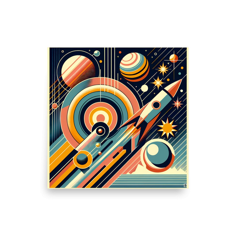 Geometric Rocket in Retro Space — Poster