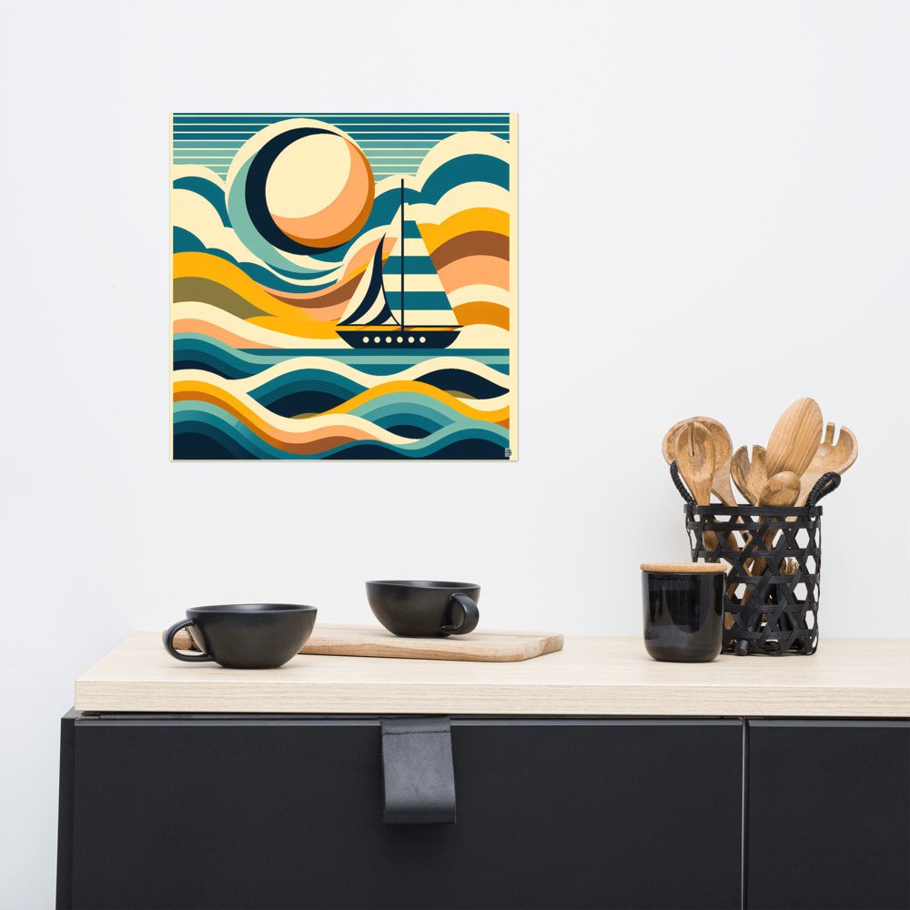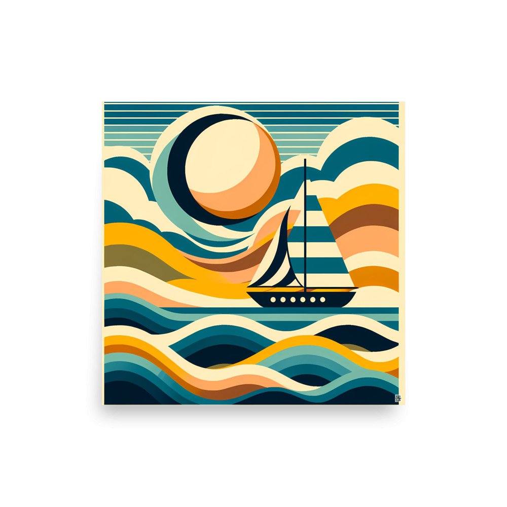 Abstract Sailboat on Colour Block Waves — Poster