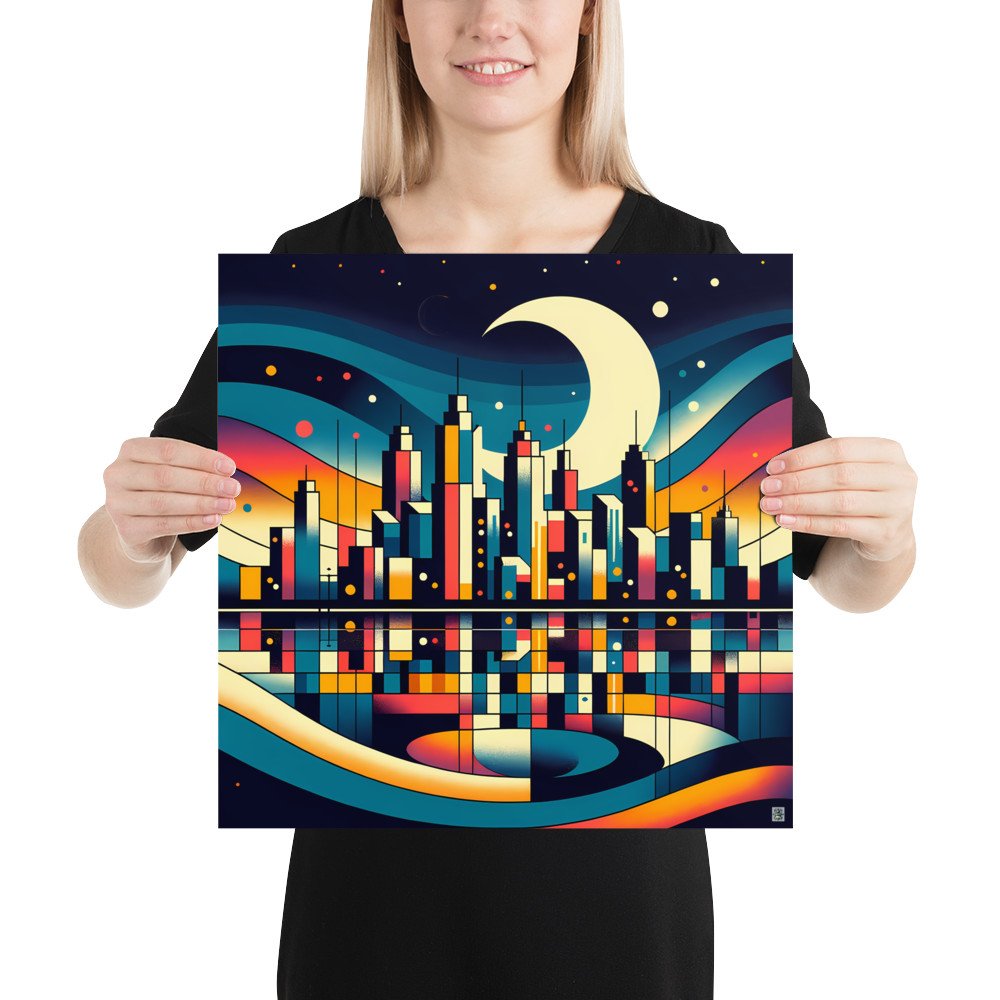 Moonlit Geometric Cityscape — Poster