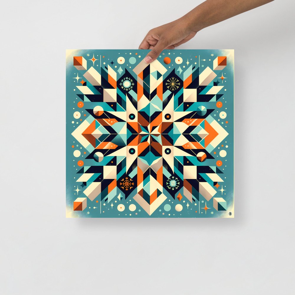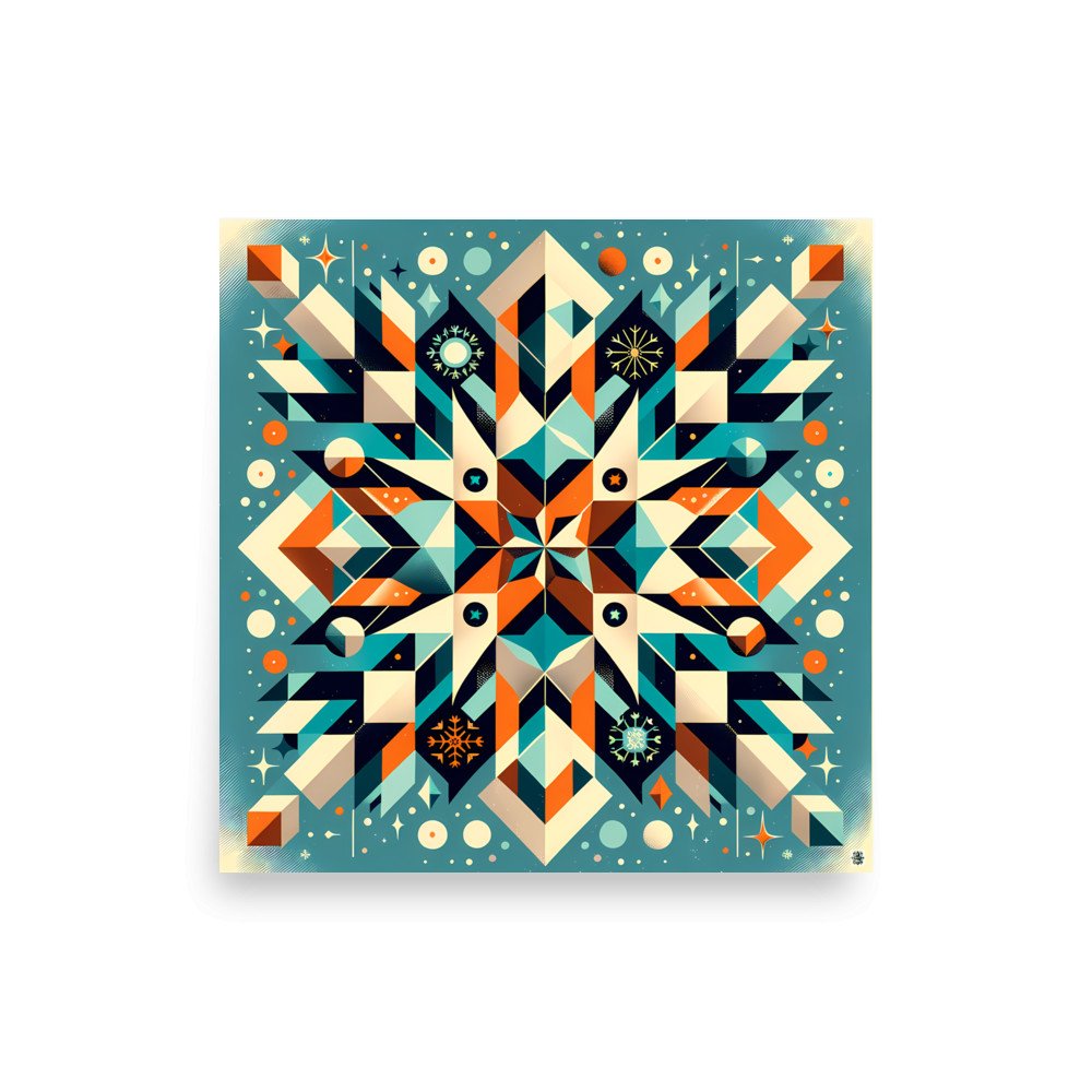 Frost AriaGeometric Snowflake Pattern in Teal and Orange — Poster