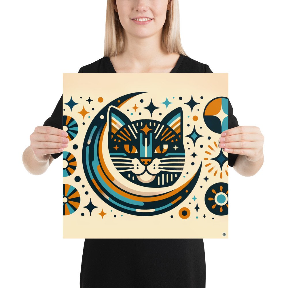 Celestial Cat Moon Graphic — Poster