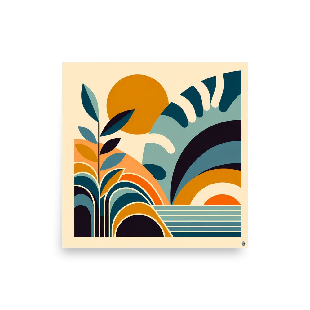 Printed on substantial archival paper, this matte poster presents the abstract floral arrangement with crisp clarity. The design's oversized sun shapes and geometric leaves in a warm palette create a focal point of modern botanical style for your space.