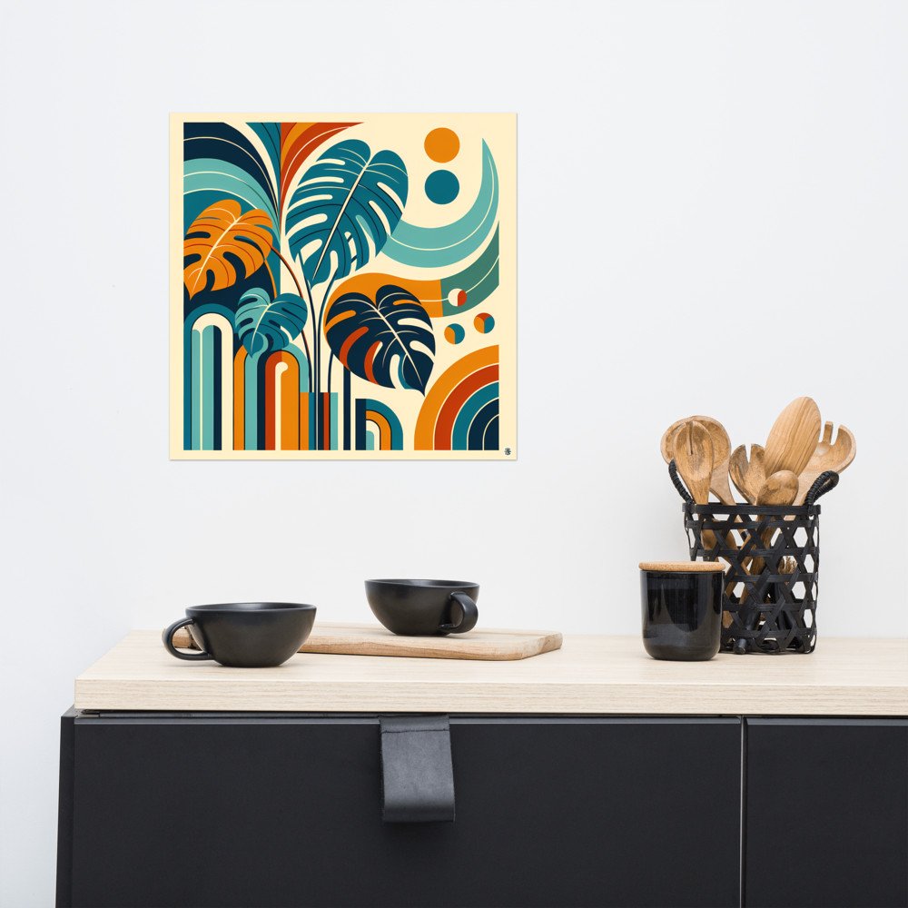 Abstract Monstera Leaves with Geometric Arches — Poster