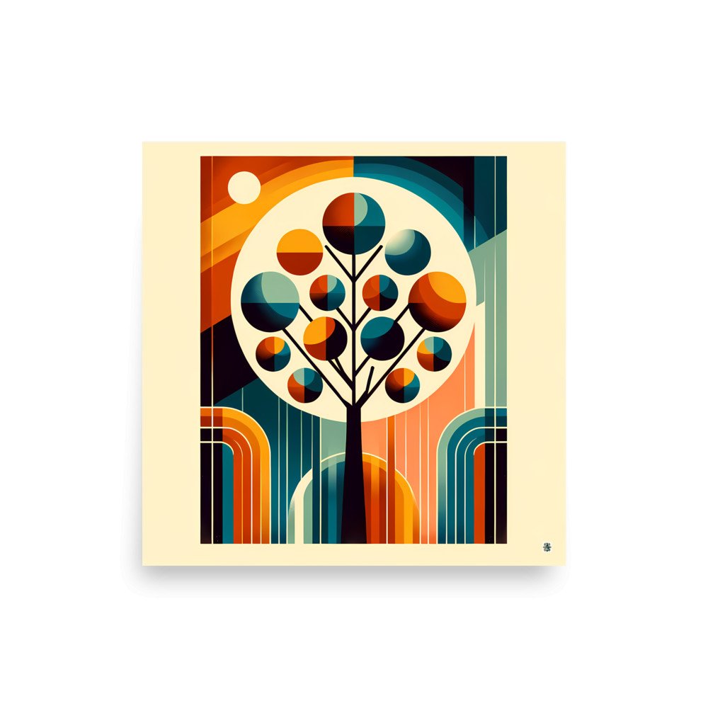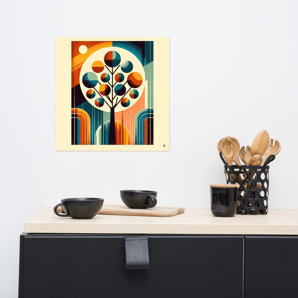Mid Century Modern Geometric Tree in Teal and Orange — Poster