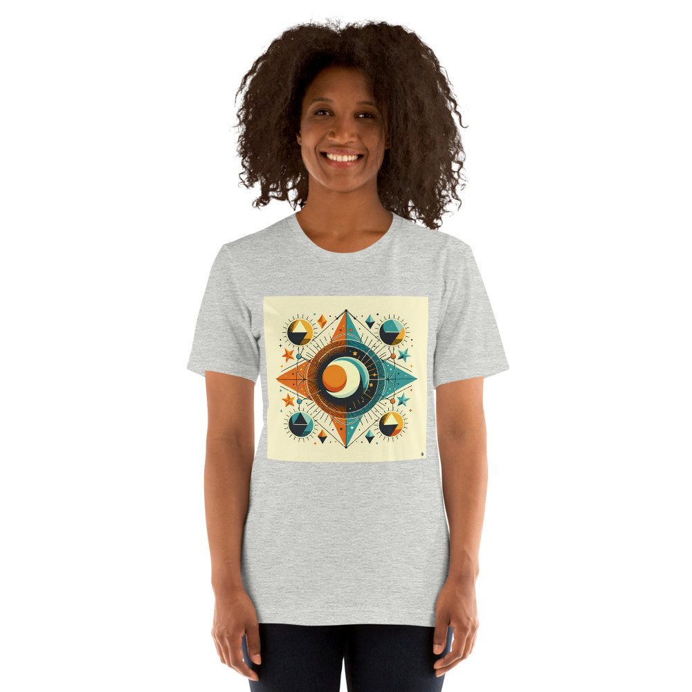 Ecliptic PathwayGeometric Sun and Moon Celestial Mandala — T-Shirt