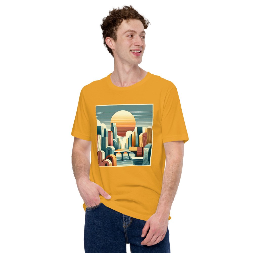 Geometric Sunset Cityscape Illustration — T-Shirt