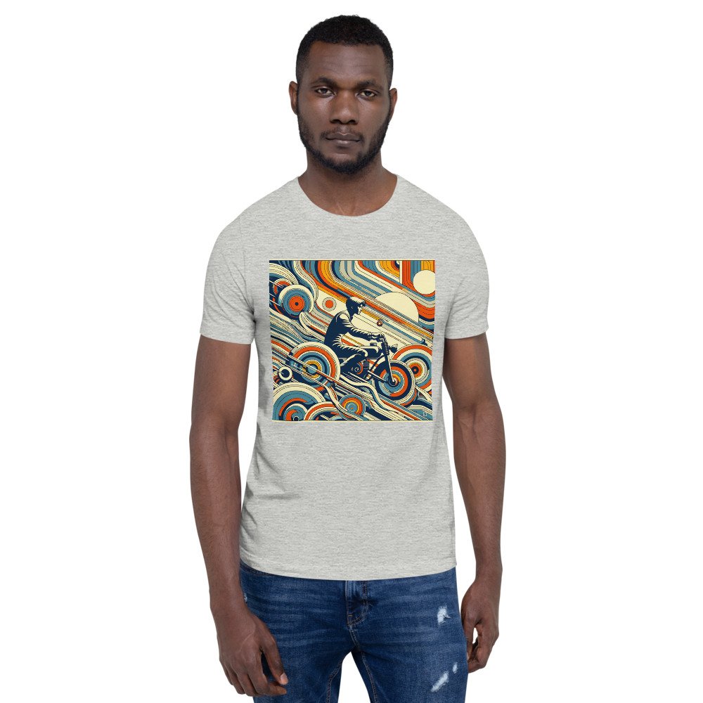 Retro Motorbike Rider with Geometric Waves in Teal — T-Shirt