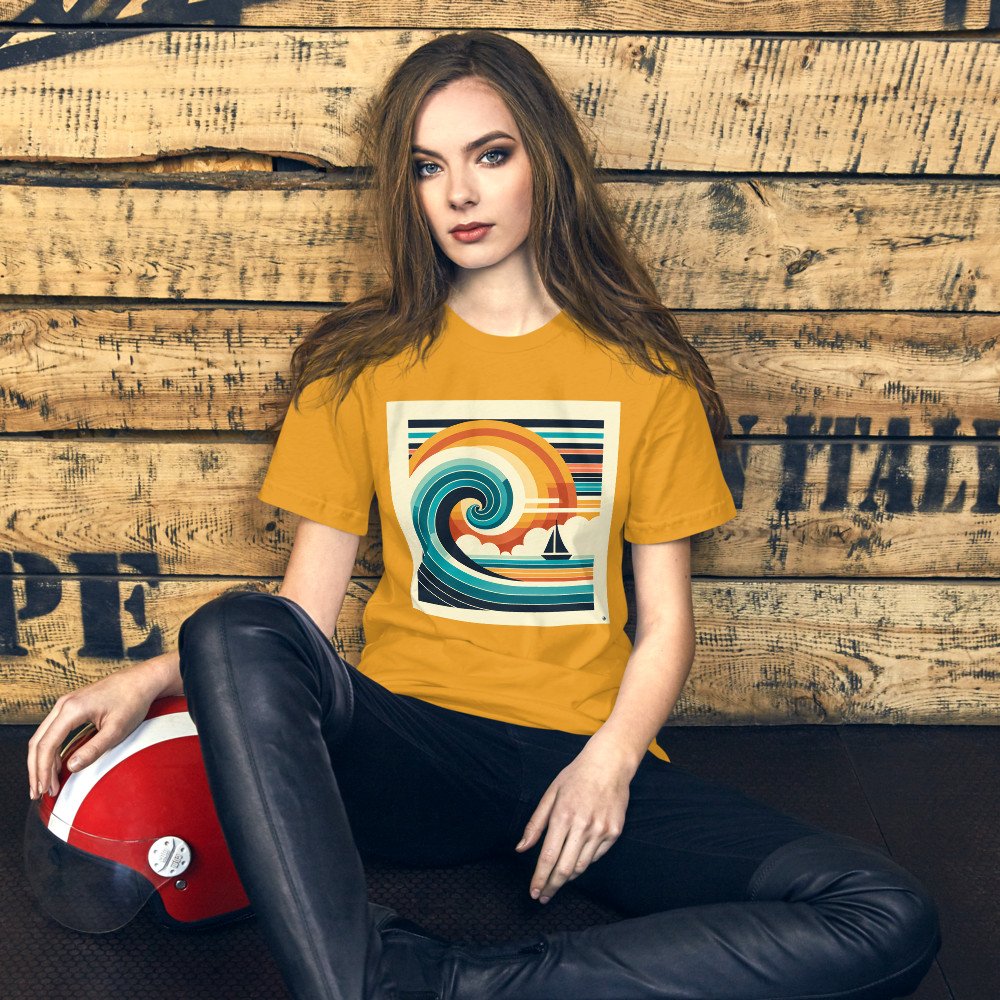 Geometric Wave and Sailboat Sunset — T-Shirt