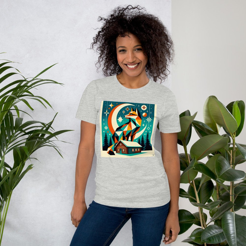 Geometric Fox Moon Winter Scene — T-Shirt