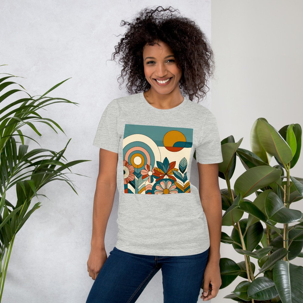 Geometric Botanical Sun and Floral Composition — T-Shirt