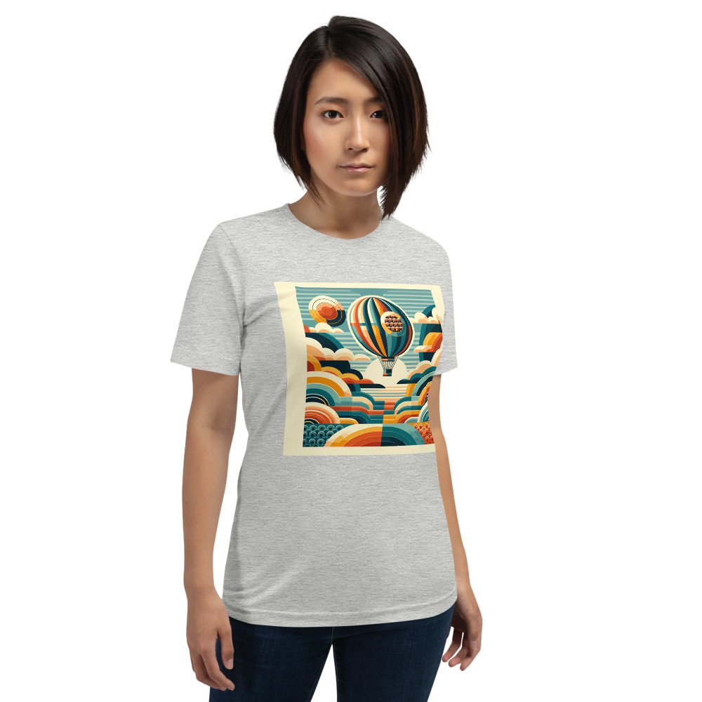 Aether VoyageRetro Hot Air Balloon with Geometric Clouds — T-Shirt