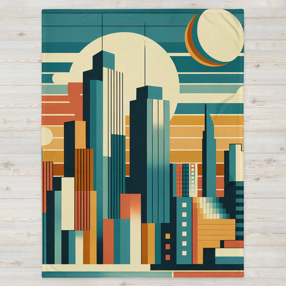 Retro Geometric City Skyline Sunset in Teal and Orange — Throw Blanket