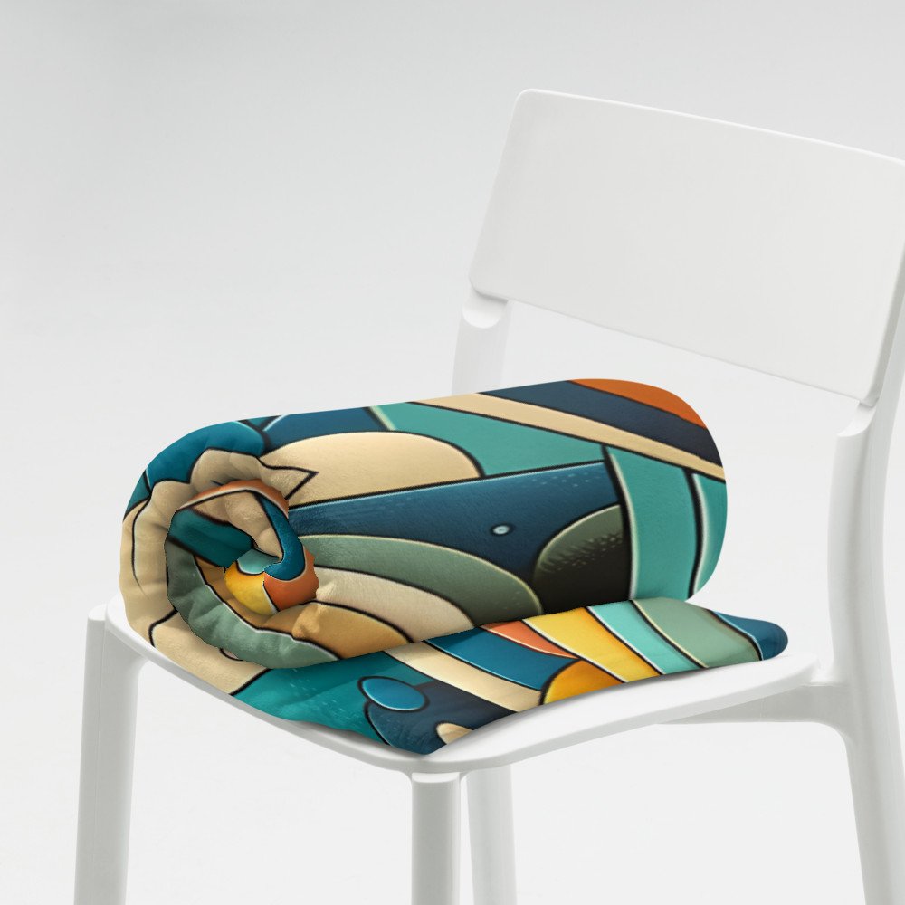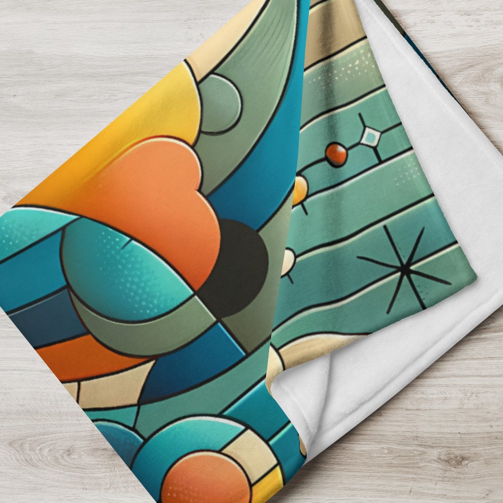 Geometric Hot Air Balloon Over Abstract Clouds — Throw Blanket