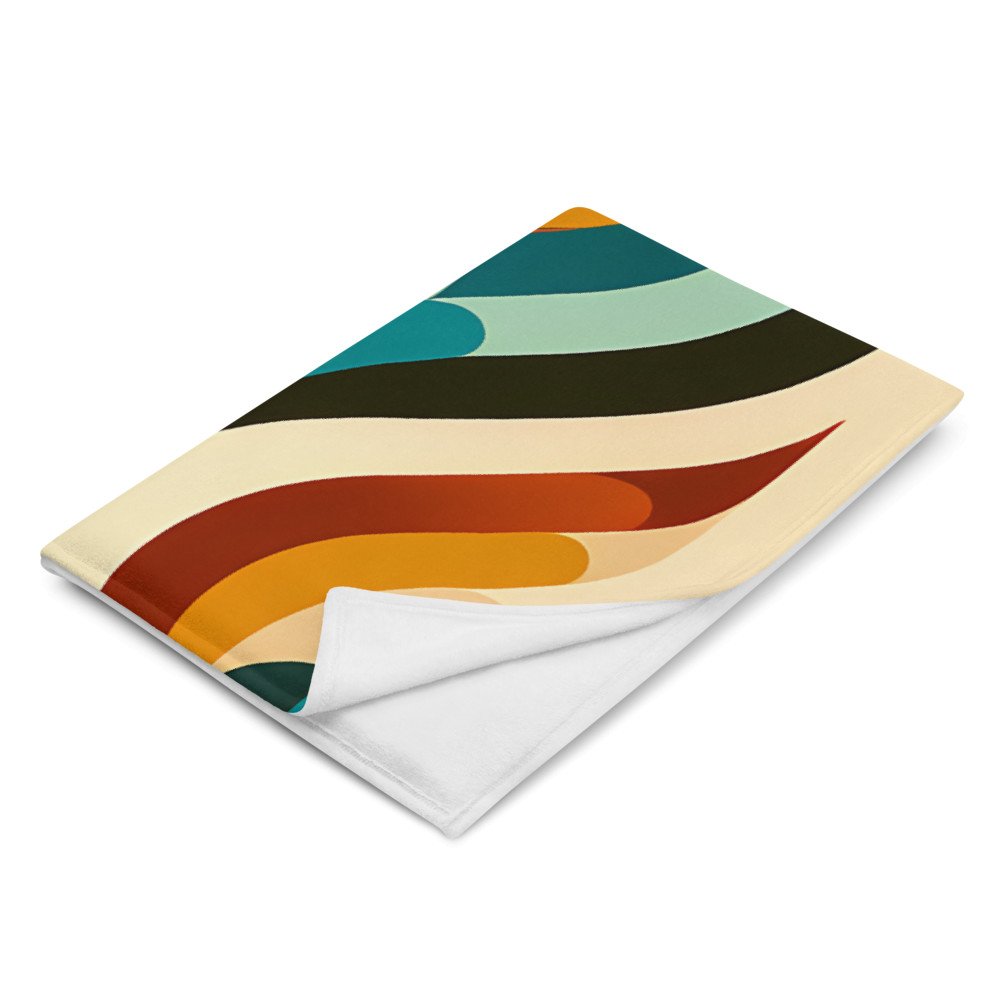 Retro Abstract Swirl Waves in Teal and Ochre — Throw Blanket