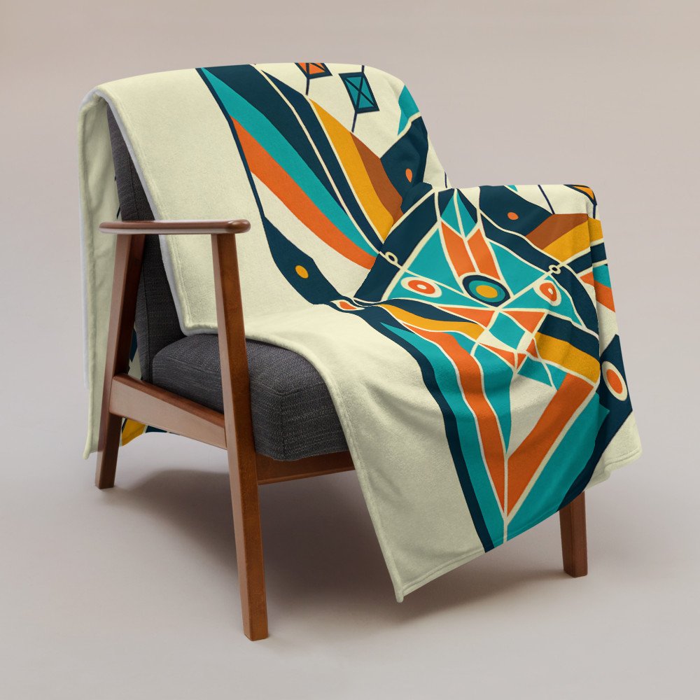 Geometric Arrow Burst in Teal and Orange — Throw Blanket